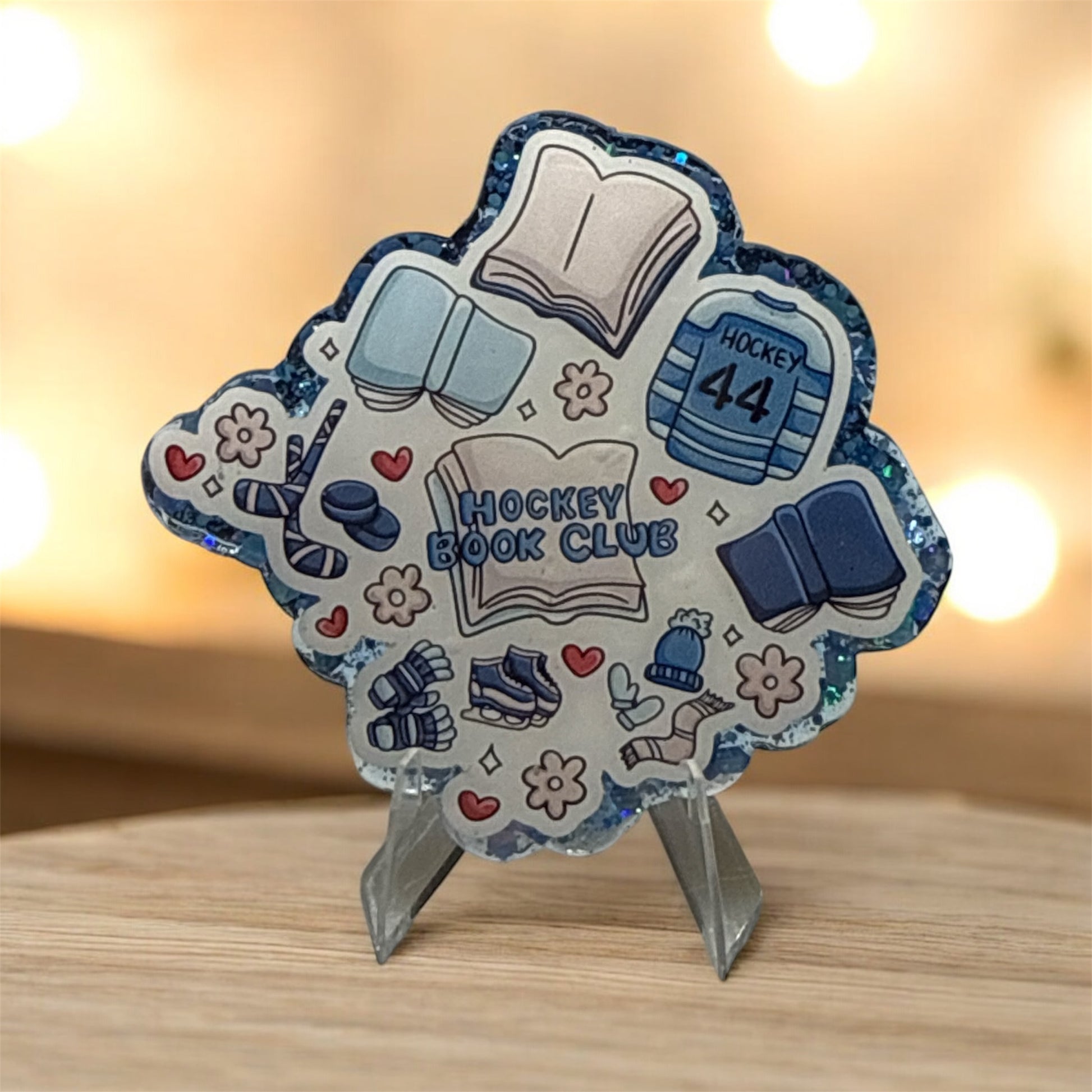 3 inch acrylic bookshelf decor with stand included. I hand make these so tiny imperfections are possible as I’m only human.